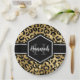 Chic gold und schwarz leopard bedruckte Papiertafel mit individuelle Name und Monogramm Vorlage. Ein niedlicher und trendiger Safari-Tiermuster-Hintergrund, der mit einem eigenen Stück Personalisierung überragt wird.