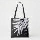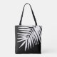Schwarze Tasche mit einem großen weißen Palmblattprint vorne und hinten und einem monogramm Textbereich zum Hinzufügen eigener Initialen