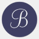 Monogramm B in Weiß auf Navy Blue, Runder Aufkleber