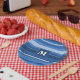 Unregelmäßige horizontale Streifen in verschiedenen Blautönen