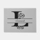 Auf dieser markanten Türmatte befindet sich Ihr Name im Drehbuch im Zentrum eines geteilten blühend Buchstaben L. Der Name und der Buchstabe sind schwarz und auf einem mittel- bis hellgrauen Hintergrund dargestellt. Wenn Sie möchten, können Sie die Hintergrundfarbe ändern, indem Sie Design bearbeiten wählen. Sie können auch den Schriftart des Namens ändern. Eleganz für Ihren Einstieg!