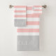 Monogramm Blush und graue Streifen | Editierbare F Badhandtuch Set