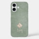 Monogramm Buchstaben und Skriptname Salbei Leder iPhone 16 Hülle