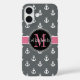 Stilvolle und raffinierte Schiffsanker nautische Muster in Holzkohle grau, mittlere Rose pink, schwarz und weiß mit koordinierendem Emblem für Sie personalisieren mit Ihrem Vornamen und letzten Initial. Erstellt von Holiday Hearts Designs für HHTrendyCases.
