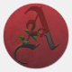Alte englische mittelalterliche Schriftart erste A, strukturiert in zwei Schichten. Die Oberseite in tiefrotem Lochblech, die Unterseite in schwarz glattem Metall mit einer roten Reflexion. Als Dekoration eine Blut-rote Rose, fast verwelkt. Ein Monogramm, das Menschen mit einem dunklen, gotischen Geschmack, sowie Rose und Blume Liebhaber Anzug.