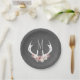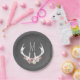 Teller mit einer Illustration ein Paar Hirschgeweihe mit Blume dekoriert. Personalisieren mit Monogramm. Hintergrund ist Kalkboard inspiriert. Personalisieren Sie das Monogramm