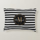 Mit diesem Monogram Accent Kissen aus der Schwarz-Weiß-Markisenband-Produktfamilie fügen Sie Ihrem Dekor eine Touch Klasse hinzu. Es handelt sich um ein modernes Design mit schwarzen, horizontalen Streifen auf weißem Hintergrund und schwarzem Kreissrand in der Mitte. Initial ist in Imitaten goldfarbene, einfache Schrift und personalisiert mit Nachnamen in weißem, trendigem handgeschriebenem Skript. Klicken Sie auf Vorlage personalisieren und folgen Sie den Anweisungen.