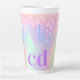 Monogramm der Tropfen des holografischen Rosa Glit Milchtasse