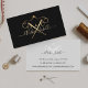 Stilvolle und elegante Vintag-Style-nahtlose Visitenkarte mit unseren handgezeichnet Nähnadeln und dem wirbelnden Gewindedesign in Imitat Gold. Personalisieren Sie Ihre Daten mit Monogramm und Name oder Firmenname. Der dunkelschwarze Hintergrund verleiht dem Design einen eleganten und Vintagen Stil. Die Rückseite ist in einem minimalen, sauberen Stil mit personalisierten Namen und Kontaktinformationen gestaltet. Alle Kunstwerke in unserer schicken Vintagen nahtlosen Visitenkarte aus Schwarz und Gold sind handgezeichnet Originalkunstwerke von Moodthology. Sie können die Hintergrundfarbe, den Schriftart und das Layout nach Ihren persönlichen Vorlieben anpassen.