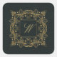 Monogramm der Zierrahmen auf dunklem Leder Quadratischer Aufkleber