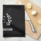 Modernes Küchenhandtuch personalisiert mit Familienname und Monogramm in einem rustikalen Lorbeerzweig. Verwenden Sie die Designtools, um eine beliebige Hintergrundfarbe auszuwählen, die Schriftart und Farben zu bearbeiten oder eigene Fotos hochzuladen, um ein solches Design zu erstellen. Die perfekte Touch für Ihre moderne Bauernküche!