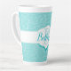 Genießen Sie Ihre Latte mit einer personalisierten Aquamarinen Glitzer Monogram Latte Tasse. Das Design der neuesten Tasse bietet einen aquamarinen Glitzer-Hintergrund mit Verzierung, um Ihren Namen und Monogramm für die Personalisierung hinzuzufügen. Glitzer ist Kunstwerk gerendert, und das Endstück enthält keinen Glitzer. Wenn Sie Hilfe bei einer Personalisierung benötigen, kontaktieren Sie mich bitte direkt.