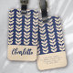 Monogramm des blauen Retro-Vibe-Leaf-Musters Gepäckanhänger