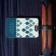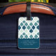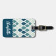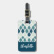 Monogramm des blauen Retro-Vibe-Leaf-Musters Gepäckanhänger