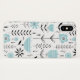 Monogramm des blauen skandinavischen Blumenmusters Case-Mate iPhone Hülle