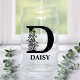 Monogramm des Blumenbriefs D und Personalisierter Dosenglas