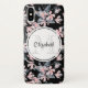 Casemate Handy Gehäuse mit elegantem Muster aus einer Aquarellbilderung von rosa Blume mit blau-grauen Blätter und Stielen. Klassischer schwarzer Hintergrund. Ein weißer Kreis überlagert mit Ihrem Namen und einem Monogramm, das sich im Inneren befindet.