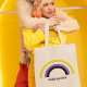 Die nicht binären Farben Gelb, Weiß, lila und Schwarz schaffen eine coole Regenbogentasche. Sie sind stolz auf einen nichtbinären Freund in der Genderqueer-Gemeinschaft, der geschlechtsunabhängig ist.