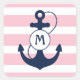 Monogramm des rosa Nautic Anchor Quadratischer Aufkleber