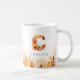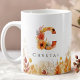 Elegante Aquarellfarben-Blätter umrahmen den Boden dieser Tasse, während der Buchstabe C eine Collage aus festlichen Fallen rot-orangen und gelben Blätter ist, Personalisieren mit einem Namen, um es einzigartig zu machen.