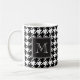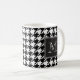 Ein klassisches Schwarz-Weiß-Hahnentrittmuster betont das Monogramm-Initial auf dieser Tasse. Personalisieren Sie für sich selbst oder ein Geschenk für jemanden besonderen.