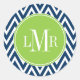 Monogramm dunkelblau und grüne Chevronen Runder Aufkleber
