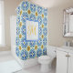 Mittelmeergelbe blaue Monogramm-Duschvorhang