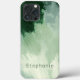 Schöne Grüntöne in diesem abstrakten Aquarellbild auf dem iPhone Gehäuse. Fügen Sie Ihren Namen zu Monogramm hinzu.