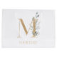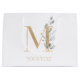 Letter M monogramm floral. Letter M in goldbrauner Textur mit grünen Aquarellfarben Blätter, Blume Blüten und Goldstaub. Personalisieren Sie mit Namen im passenden Schriftart.