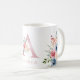 Wasserfarben Monogram Floral Letter A Coffee Tasse Eine blumenfarbene personalisierte Kaffee-Tasse mit einem Namen und einer Rose rosa Monogramm Buchstaben "A", mit einem dekorativen Aquarell und Blume. Sie können es einfach mit Ihrem Namen anpassen. Würde ein schönes Geschenk für Ihre Lieben machen!