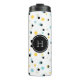 Monogramm für blaues Schwarz-Gelb-Konfetti-Muster Thermosbecher