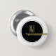 Moderne, schwarze und goldene Trommeln mit kundenspezifischen Monogramm-Initialen. Cooler, minimaler, einzigartiger, schwarz-weiß, Rockmusik mit Monogramm Knopf.