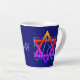 Farbige Jüdische Neujahrsmonogramm Latte-Tasse mit 5782 (hebräisches Jahr entsprechend 2022). Das Design zeigt einen lebendigen, farbigen Star of David (Magen David) mit einem CUSTOMIZABLE 5782, sodass Sie es für JEDES JAHR ändern (oder löschen) können - alles Set vor einem dunkelblauen Hintergrund. Das Design wird auf der Rückseite wiederholt, und in der Mitte befindet sich ein ZOLLBARES MONOGRAMM. Das wäre ein großartiges Geschenk, um Rosh Hashanah zu feiern. Wählen Sie aus einer großen Auswahl an jüdischen Kleidung, Karten, Wohngestaltung, Party und Geschenken, die von Berean Designs entworfen wurden.