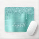 Individuell elegantes und gürtelndes Mauspad mit Minz-grünen Imitaten Glitzer-Tropfen und einem minzgrünen Imitat aus metallischem Hintergrund. Monogram mit Ihrem Namen in einem stilvollen, trendigen weißen Skript mit Swashes.
