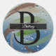 Monogramm für grüne, braune und beige Pinselstrich Runder Aufkleber