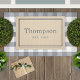 Dieses mit Monogramm Doormat ist einfach und elegant, mit dem Nachnamen Ihrer Familie in ansehnlichen Serifenschrift mit dem unten festgelegten Jahr und einem stilvollen gestreiften Rahmen-Design. Ein wunderschönes Geschenk für Neuvermählte oder neue Hausbesitzer. Umfasst eine beige Eingratschicht mit rustikaler Textur. Beige und karkohlegraue Designfarben mit neutralem Licht können so modifiziert werden, dass sie sich mit Ihrer Wohngestaltung abstimmen.