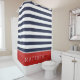 Monogramm für Rot und Navy Stripes Duschvorhang