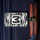 Gepäckträger mit Lederband: quadratisches gerahmtes Monogramm auf gemustertem schwarz-weißem Zebra-Hintergrund