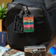 Modernes, trendiges, monogramm Gepäckstück. Design mit pastellfarbenen Streifen und Monogramm mit Namen und Initialen.