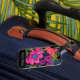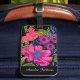 Dieses florale und botanische Design ist mit Blume in Rosa, lila und pfirsichfarben und Blätter in kräftigen Grüntönen mit schwarz-weißen Streifen und Ihrem Namen