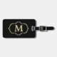 Dieses personalisierte Gepäckanhänger zeigt Ihr Monogramm in Gold in einem passenden goldfarbenen Zierrahmen und wird auf einem soliden schwarzen Hintergrund platziert. Die Rückseite des Tags ist massiv schwarz, mit Ihrem angepassten Text in Gold. Sehr charakteristisch und elegant.