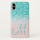 Monogramm-Girly aquamarines Glitzer-Namensrosa Case-Mate iPhone Hülle