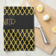 Monogramm, Gold und schwarzes Vierblatt Geschirrtuch
