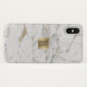 Monogramm-Goldaufkleber-elegantes Weiß u. GoldmarmoriPhone Hüllen.