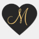 Monogramm, goldfarbenes Anfangszeichen M auf schwa Herz-Aufkleber