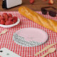 Monogramm Grau Zickzack mit Pastellrosa Polka Dot Pappteller