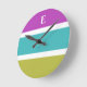 Monogramm grüner blauer Streifen Zeitgesteuerte Wa Runde Wanduhr