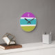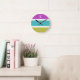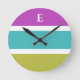 Moderne Wanduhr mit gestreiftem Design in Rosa, Grün, Blau und Weiß. Personalisieren Sie die Uhr mit Ihrem Initial, der als Buchstabe mit weißer Hauptstadt am oberen Ende der Uhr erscheint. Die auffällige Uhr ist eine nützliche und attraktive Ergänzung zum Zuhause und ein stilvolles Geschenk im zeitgenössischen Stil.