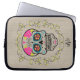 Schützen Sie Ihren Laptop mit einem schicken trendigen Hipster Sugar Skull Ärmel. Ein süßer Zuckerschädel mit verschiedenen Blume und Rose mit einem funky urbanen coolen Design mit verzierten Wirbel und Vintagen Texturmustern. Der Schädel ist von einem Weinrahmen umgeben. Imitate begraben die Textur. Feiern Sie den mexikanischen Tag der Toten oder Dia de los Muertos mit diesem einzigartigen Skelett calavera. Ideal für eine Feier und Feiern. Klicken Sie auf Anpassen, um Monogramm oder Namen hinzuzufügen, Farbe oder Schriftart zu ändern - und erstellen Sie Ihr eigenes einzigartiges Design! Von Marisu Valencia™.