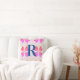 Monogramm Hot Pink Bright Orange Retro Blume Kissen